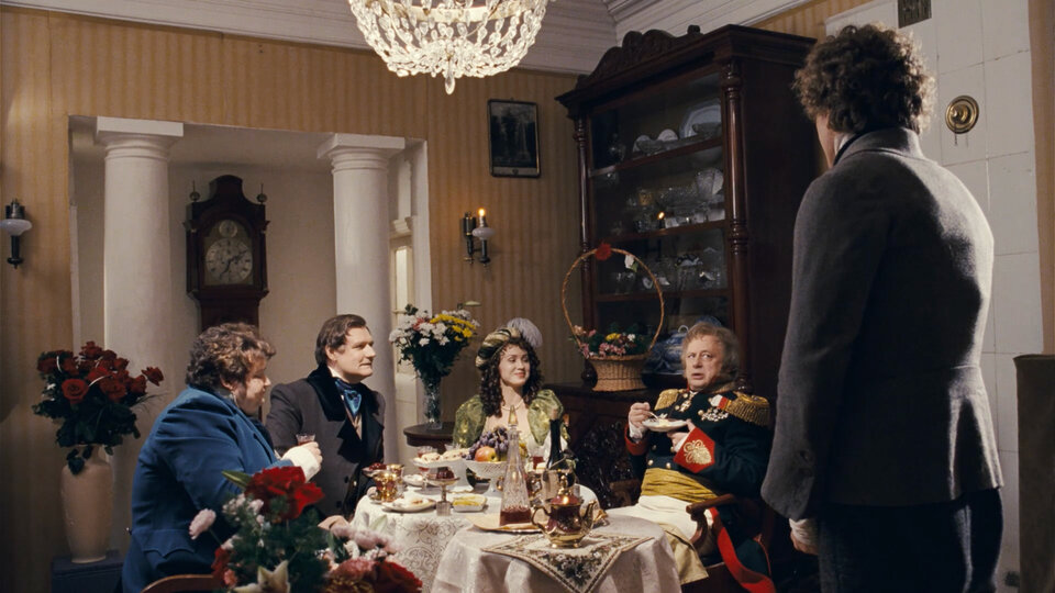 Жутковато-кринжовая трагикомедия о бывших советских людях, выброшенных историей на свалку (буквально), была снята на рубеже голодных 1980-х и холодных 1990-х. По понятным причинам фильм демонстрирует не совсем здоровую фиксацию на еде: выпить и закусить тут присаживаются каждые пять минут. Но все рекорды (в том числе дикости) бьет свадьба диссидента Елистратова (Басилашвили), засквотившего гигантскую композиторскую дачу, и пэтэушницы-лимитчицы, надеющейся завладеть имуществом доверчивого пенсионера (Наталья Щукина в ярком раскрасе). Марафонский по продолжительности эпизод включает и обстоятельный флешбэк с самой дикой эротической сценой перестроечного кино (Щукина топлес пожирает сгущенку из жестянки, лежа в постели), и разнузданное поглощение Станиславом Садальским закусок, и трогательное угощение черного котенка Пончика студнем и шампанским, и музыкальную паузу с блатняком, и приход настоящих хозяев помещения. Развидеть это уже невозможно.